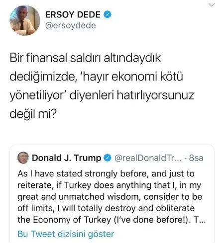 Trump'ın "Ekonominizi daha önce yaptığım gibi mahvederim" mesajı yapılan ekonomik saldırların nereden geldiğini gözler önüne serdi.